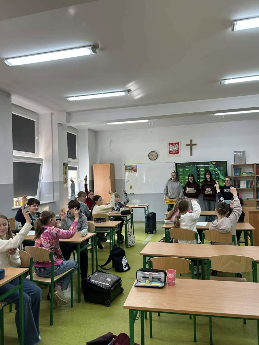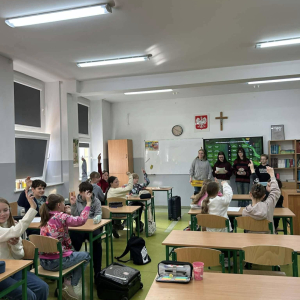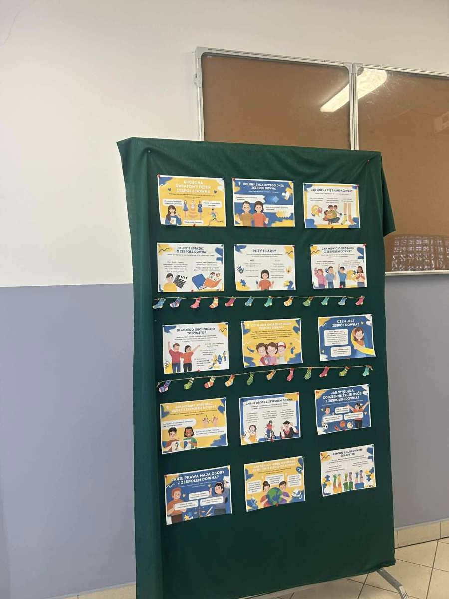 Dodatkowo wolontariusze przeprowadzili w starszych klasach quiz sprawdzający wiedzę o zespole Downa, a na szkolnym korytarzu pojawiła się gazetka tematyczna.