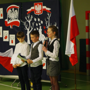 W środę 12 listopada odbył się uroczysty apel. Uroczystość rozpoczęła się od wspólnego odśpiewania hymnu państwowego "Mazurka Dąbrowskiego”. Uczniowie przypomnieli najważniejsze momenty z historii walk o wolność oraz zaprezentowali pieśni patriotyczne nawiązujące do okresu zaborów.