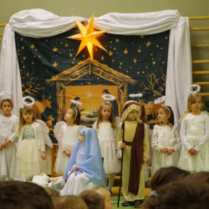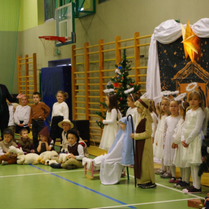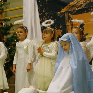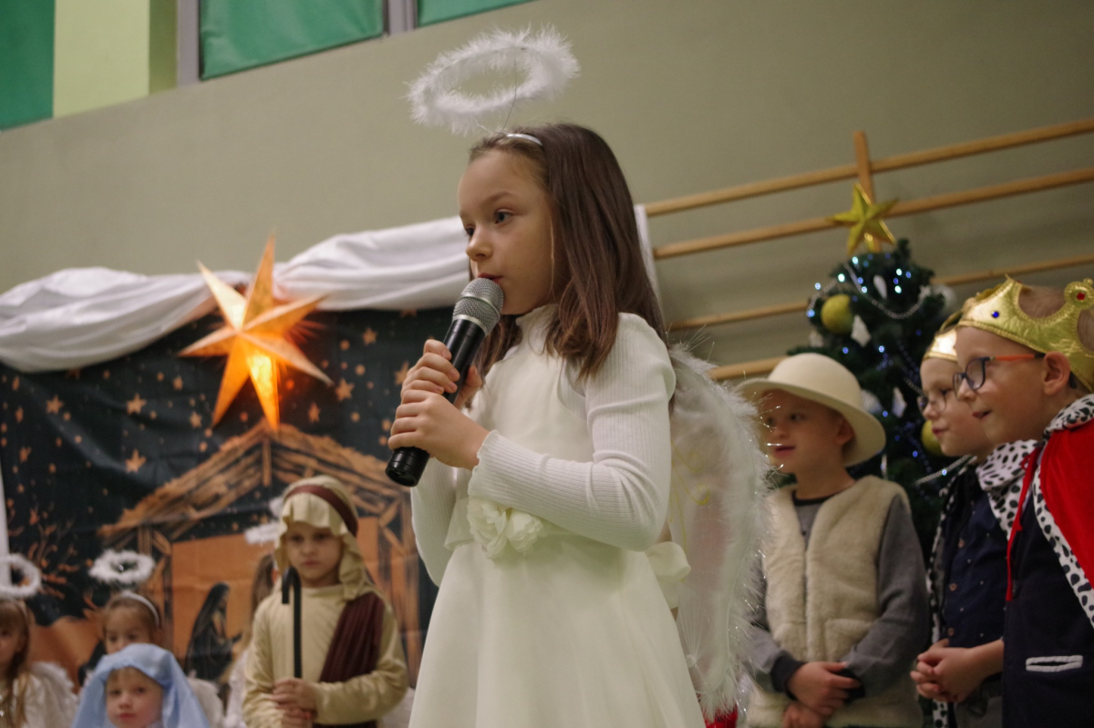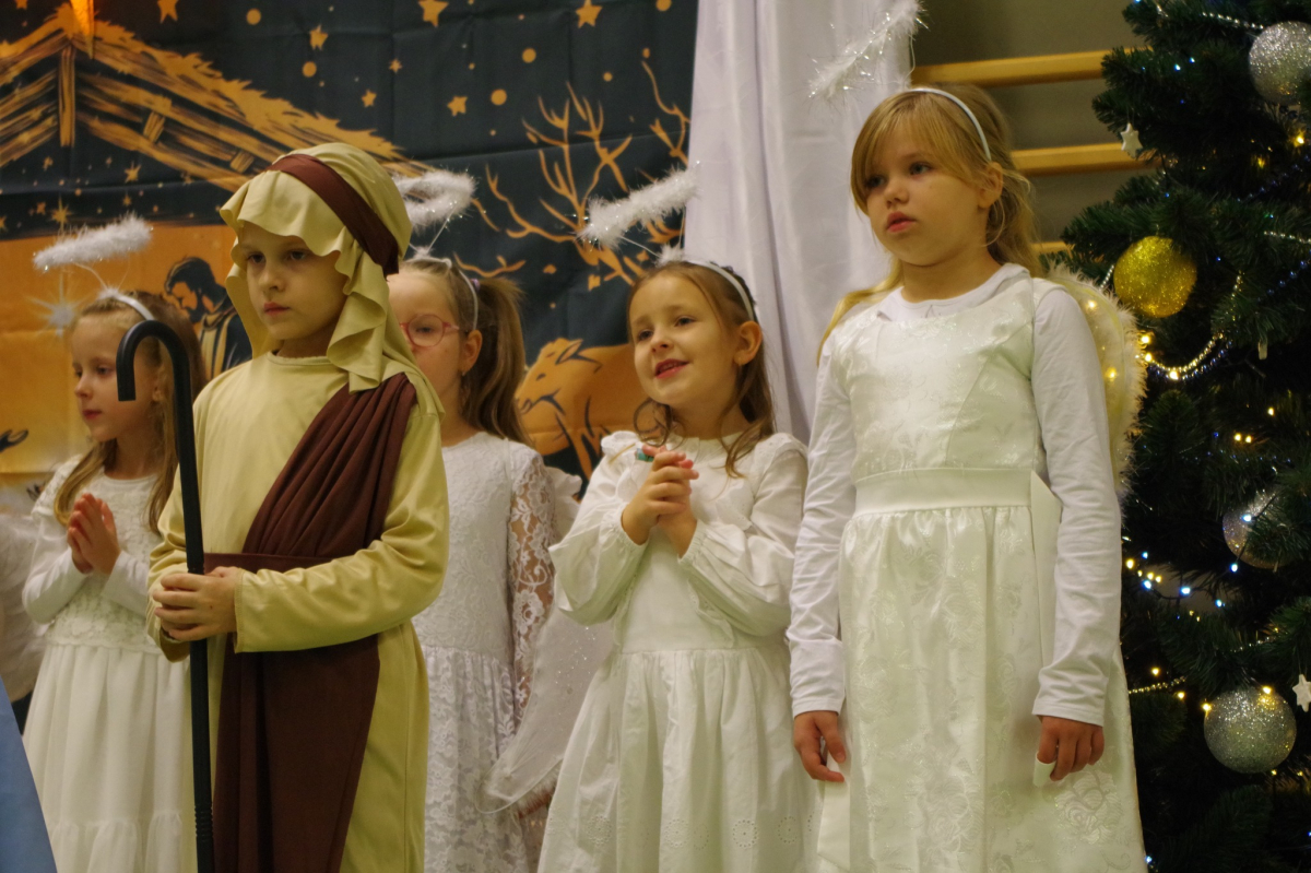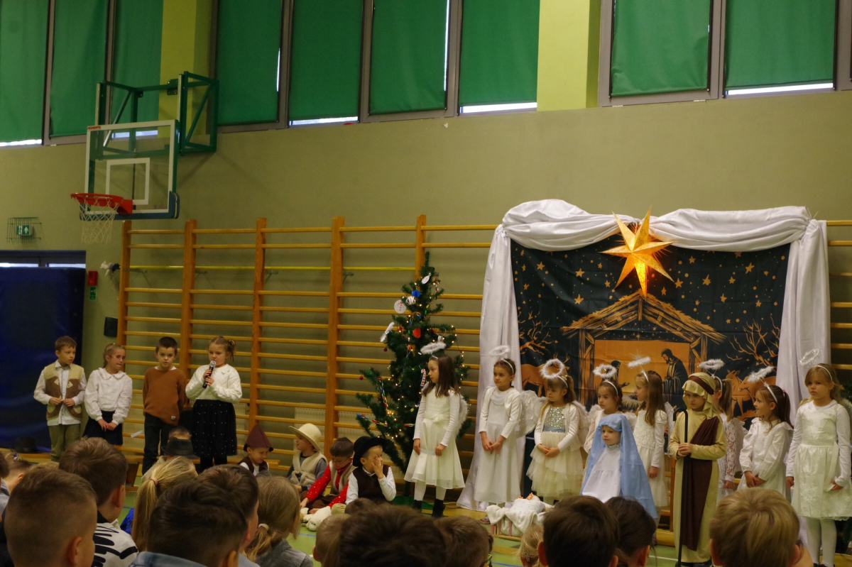 W czwartek, 18 grudnia w naszej szkole odbyły się wyjątkowe jasełka, podczas których dzieci zaprezentowały piękną historię narodzin Pana Jezusa. Mali artyści zachwycili publiczność swoim zaangażowaniem, talentem i radością płynącą ze wspólnego występu. Liczne kolędy wprowadziły wszystkich w prawdziwie świąteczny nastrój, tworząc niezwykle ciepłą i cudowną atmosferę. Na zakończenie Pani Dyrektor oraz Pani Przewodnicząca Rady Rodziców złożyły wszystkim serdeczne życzenia świąteczne, dziękując za zaangażowanie uczniów i nauczycieli w tworzenie tego pięknego wydarzenia !