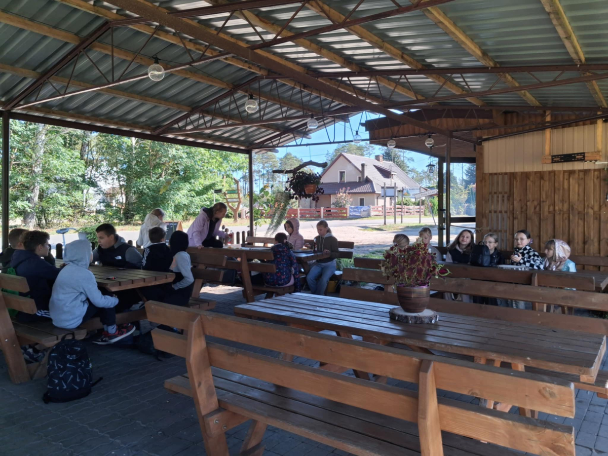 Dnia 25 września 2025 r. klasa V udała się na piknik. O godzinie 9.30 wyruszyliśmy szkolnym busem do Czernicy. Po dotarciu na miejsce udaliśmy się na spacer nad jezioro. Idac lasem, podziwialiśmy przyrodę oraz zbieraliśmy szyszki, które później wykorzystaliśmy w grach.