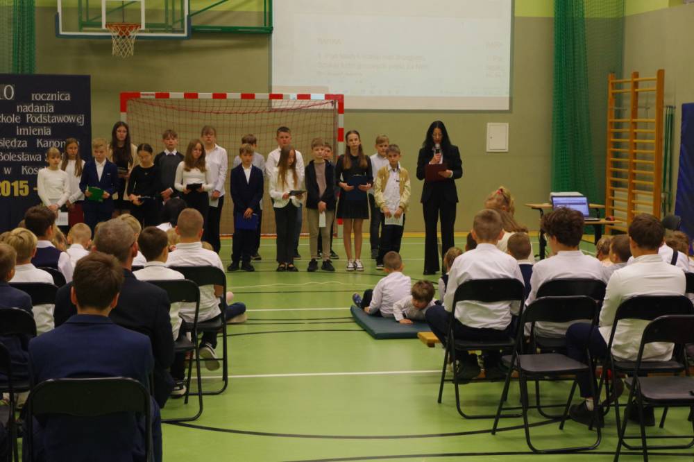 Dzisiaj 19 maja obchodziliśmy X rocznice nadania szkole imienia Księdza Kanonika Bolesława Śledzia. Inauguracją obchodów była uroczysta Msza Święta w której udział wzięli nasi uczniowie, nauczyciele i rodzice. Po Mszy Świętej udaliśmy się na cmentarz, gdzie uczniowie złożyli kwiaty i zapalili znicze na grobie patrona naszej szkoły, następnie wróciliśmy do szkoły na uroczysty apel przygotowany przez uczniów kl. V. W czasie występu uczniowie przybliżyli sylwetkę Patrona Szkoły – Księdza Kanonika Bolesława Śledzia w Kosobudach.