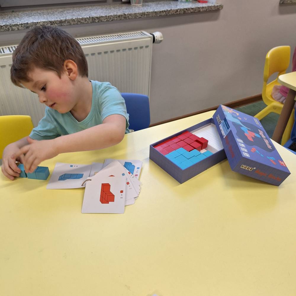 Podczas zajęć dzieci dokonywały klasyfikacji przedmiotów, liczyły i rachowały oraz odwzorowywały podany układ klocków.
