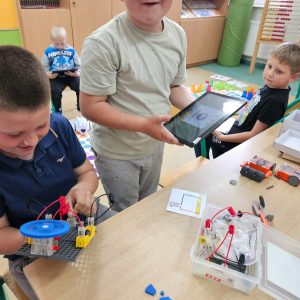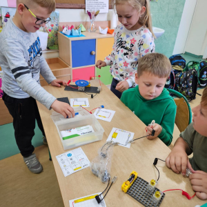 Uczniowie Szkoły Podstawowej w Kosobudach uczestniczą w projekcie edukacyjnym "Gmina Brusy stawia na edukację ". Zajęcia "Programowanie z klockami Lego" odbywają się w 2 grupach. Dotychczasowe zajęcia z programowania i konstrukcji robotów Lego Spike, Photoshop, Ozobot, Geniboot i Edison przyczyniły się do nabycia przez uczniów kompetencji technicznych, cyfrowych i społecznych. Uczestnicy rozwijali umiejętności projektowania, programowania, współpracy i kreatywnego myślenia, co stanowi istotny element ich wszechstronnego rozwoju edukacyjnego.